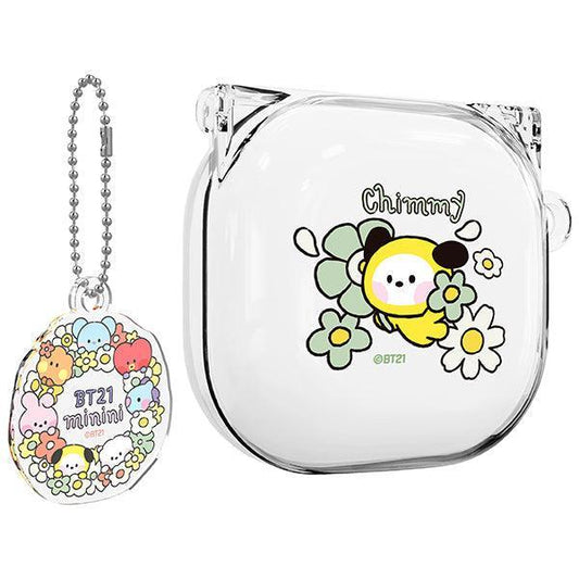 BT21 Minini Happy Flower Galaxy Buds 2 Pro Buds 2 Buds Pro Buds Live Compatible Key ring Set Transparent Slim Case