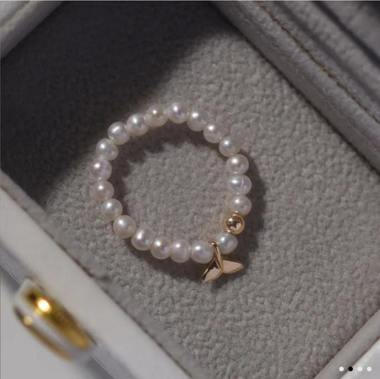 [Lucky Gift/BEST] 14k Beluga Natural Freshwater Pearl Whale Tail Ring
