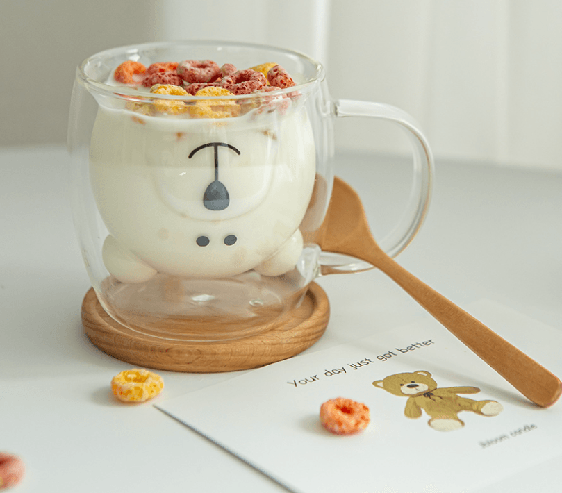 [Gift set] Home cafe gift” Bellu bear set (2 heat-resistant mugs + 2 wood saucers + 2 wood spoons + postcard + gift packaging)
