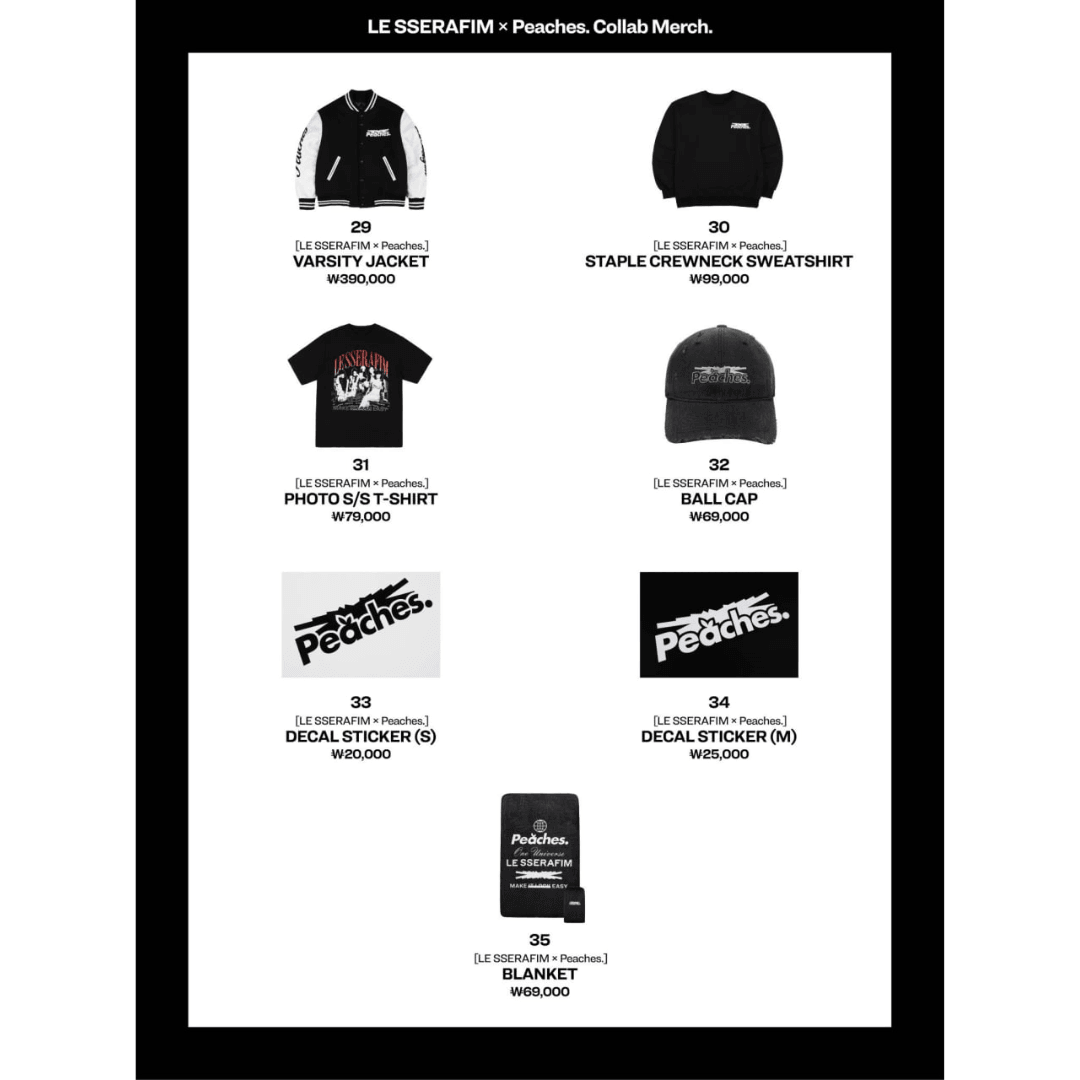 Buy over USD 41.65 (KRW 50,000, JPY 6,250) of LE SSERAFIM Official Merch., LE SSERAFIM 3rd Mini Album ‘EASY’ Official Merch. and/or LE SSERAFIM X Peaches. Collab Merch. and get 1 instant photocard.