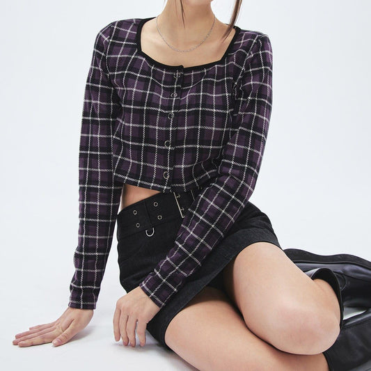 [Zero Planet] Check Square Crop Cardigan (Red Velvet Joy Pick!)