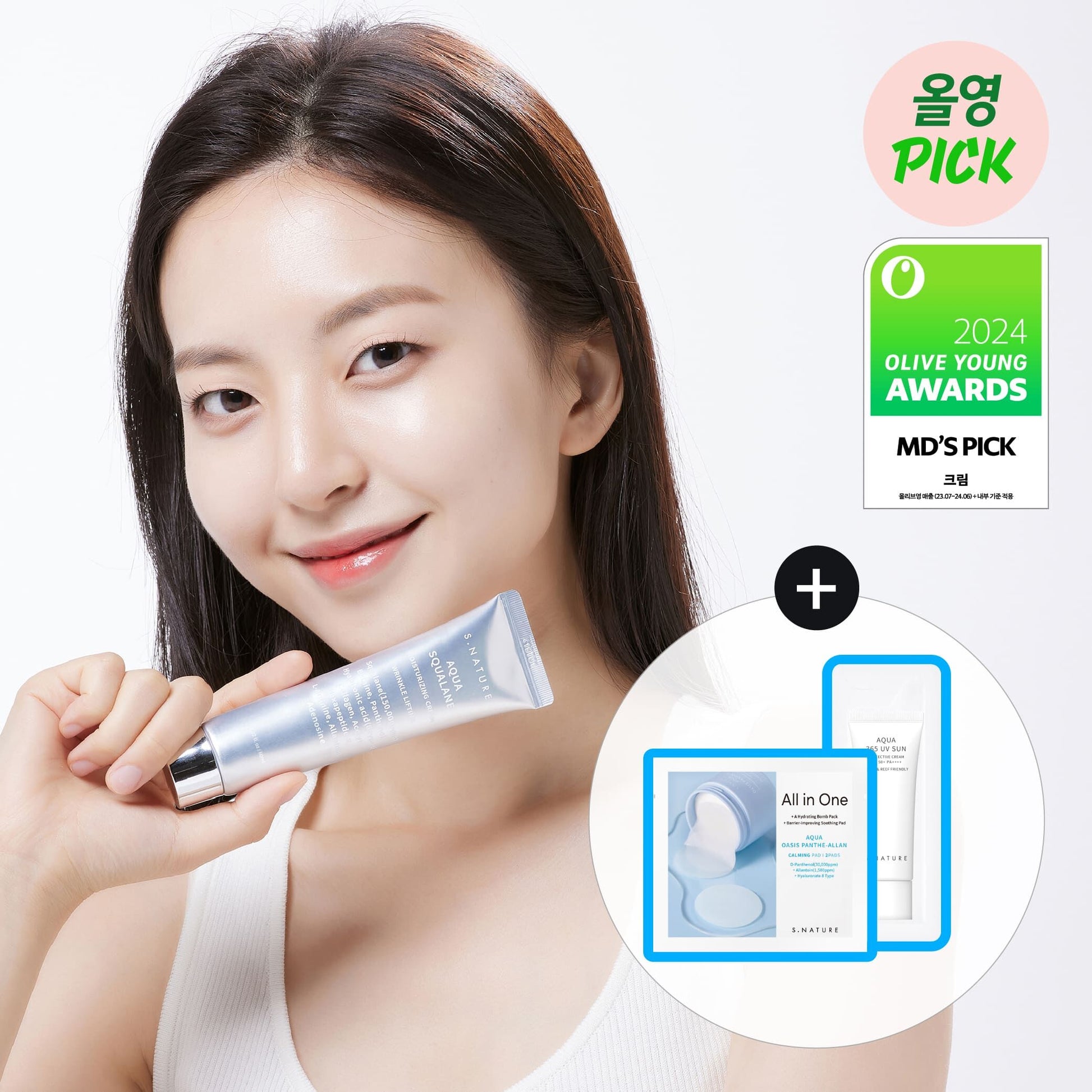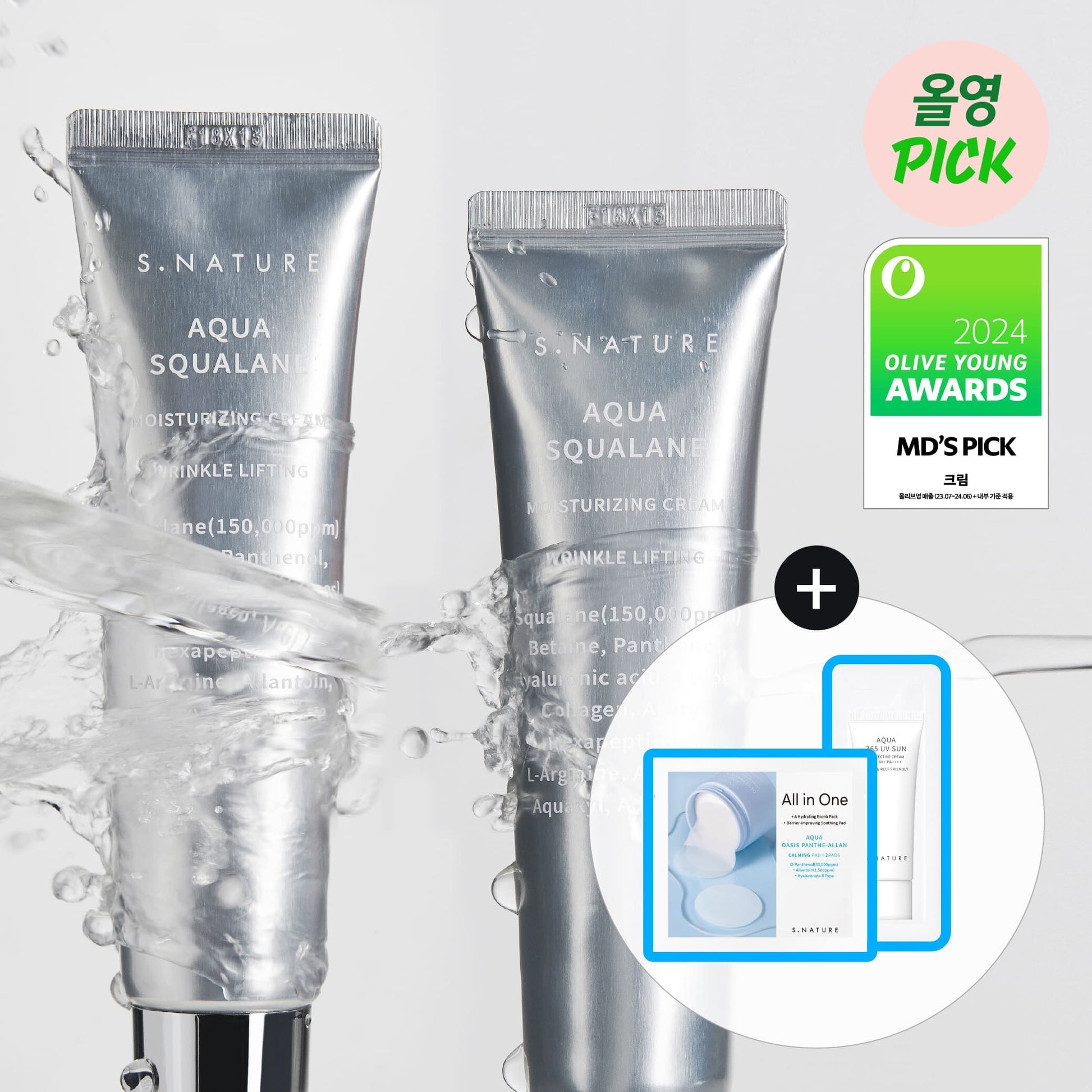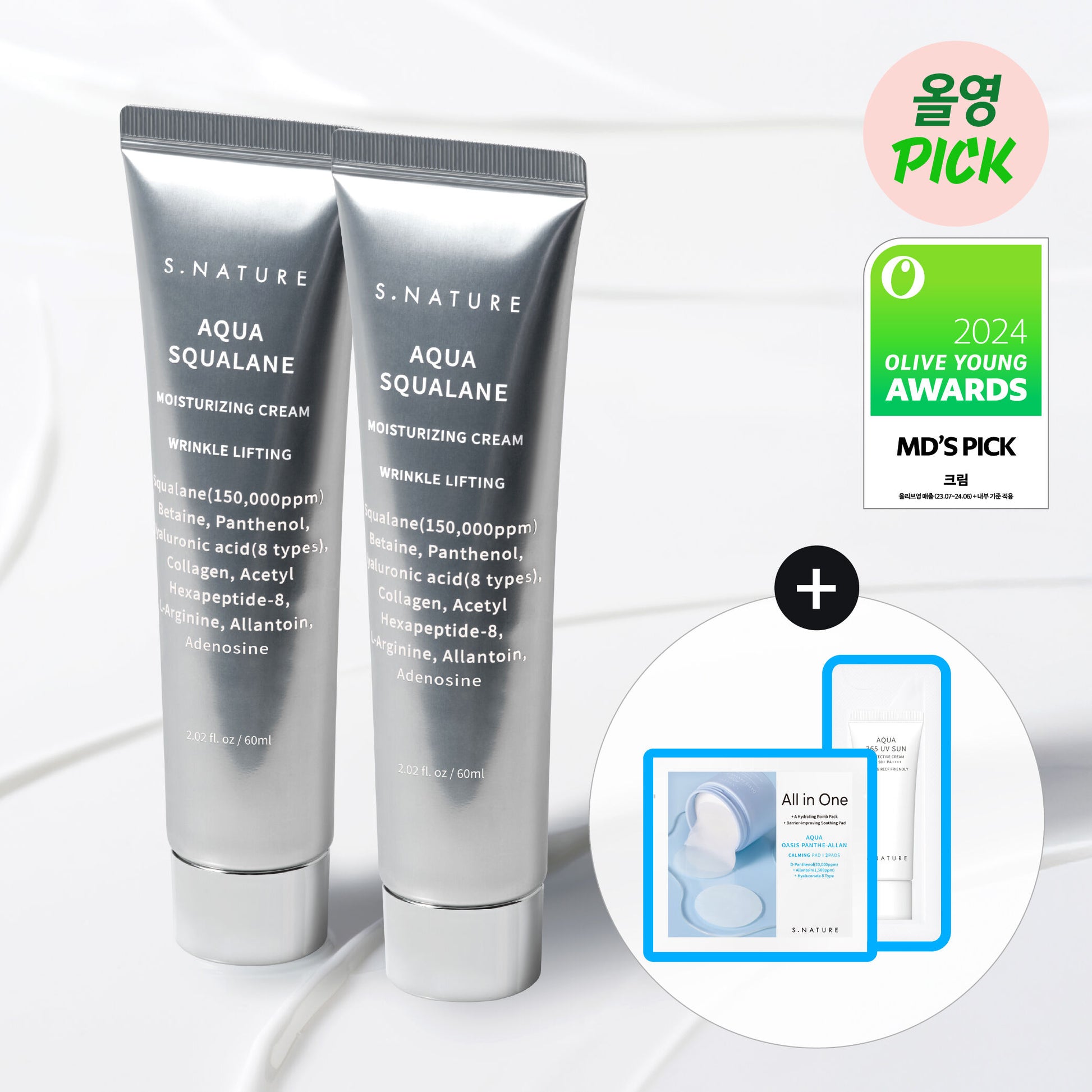 (1+1)Snature Aqua Squalane Moisture Cream 60ml(+2 Calming Pads + 1.5ml Sunscreen)