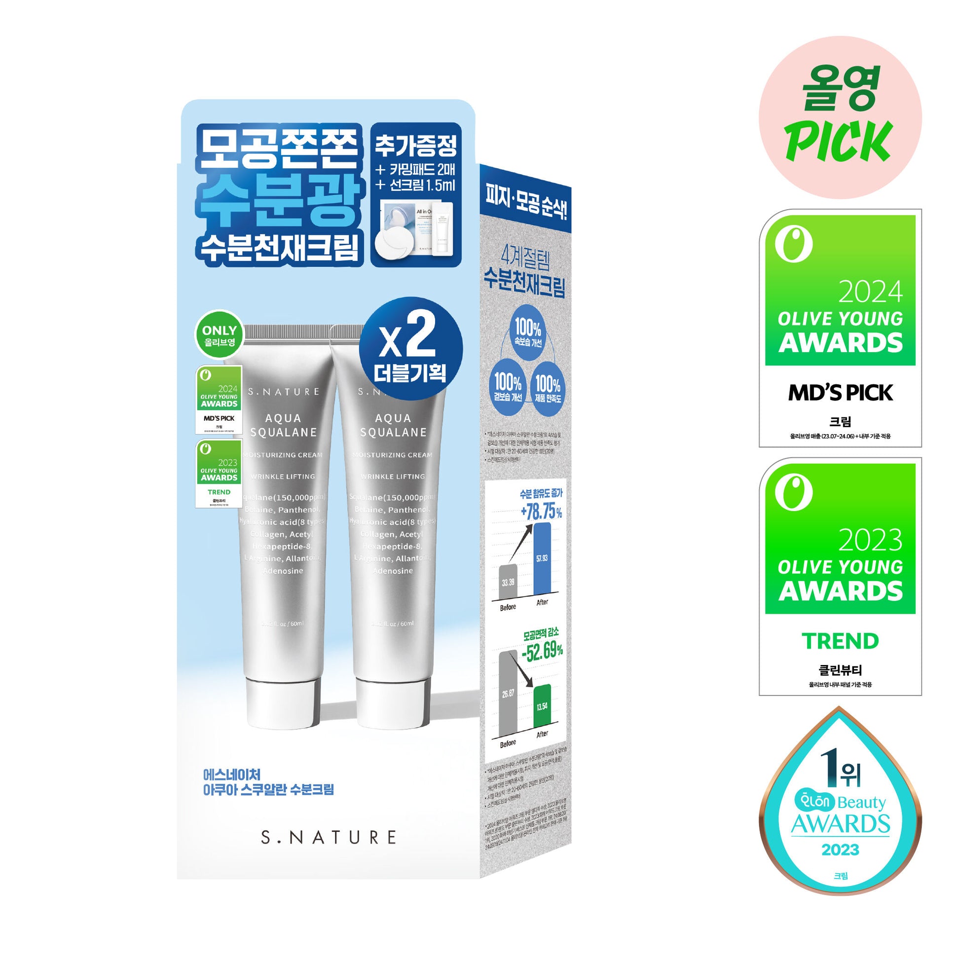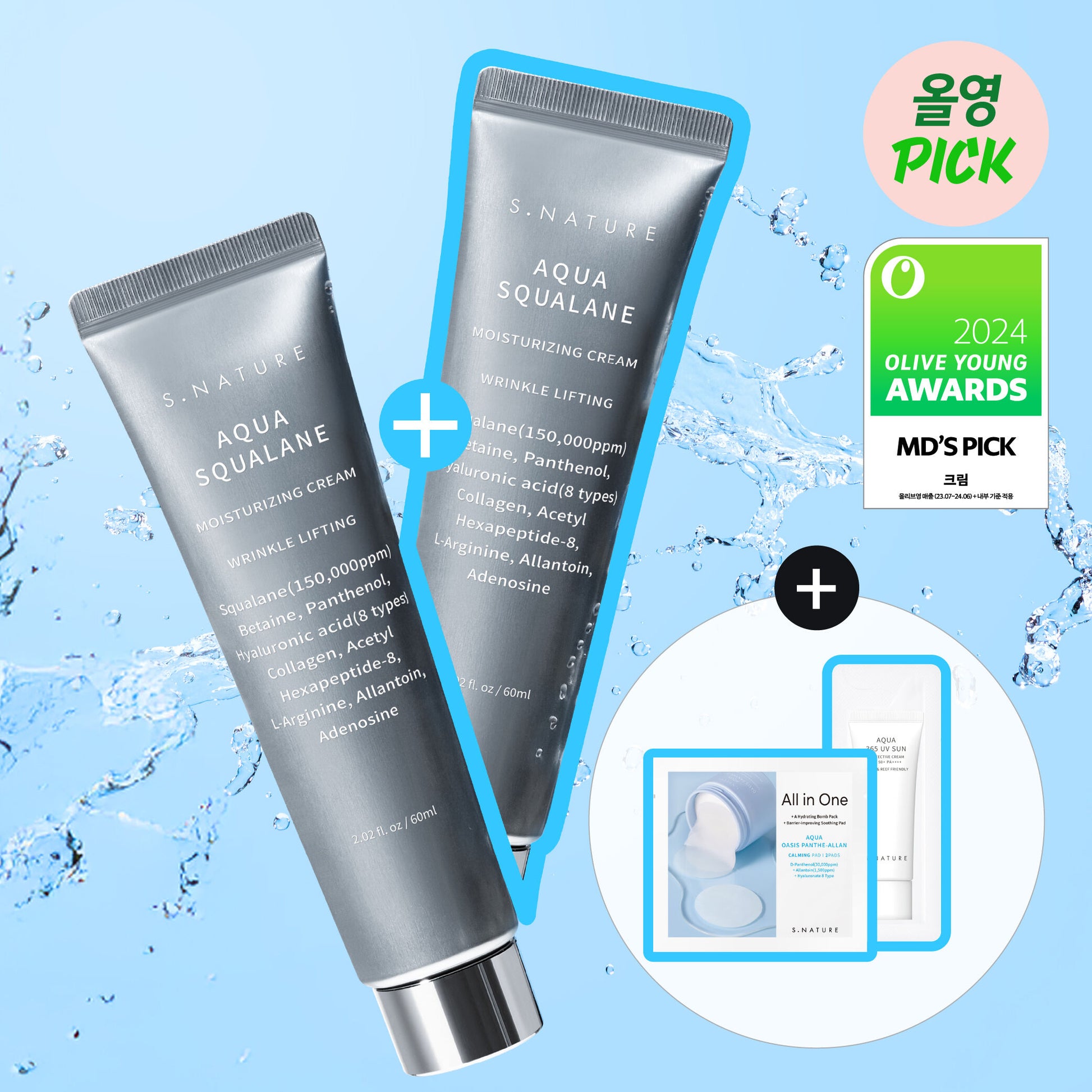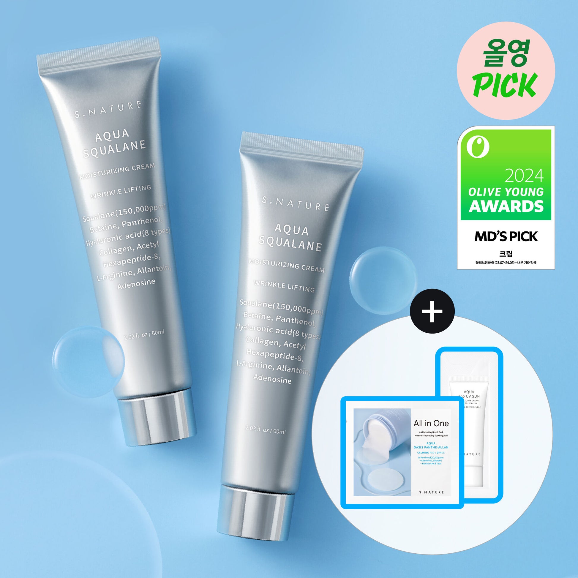 (1+1)Snature Aqua Squalane Moisture Cream 60ml(+2 Calming Pads + 1.5ml Sunscreen)