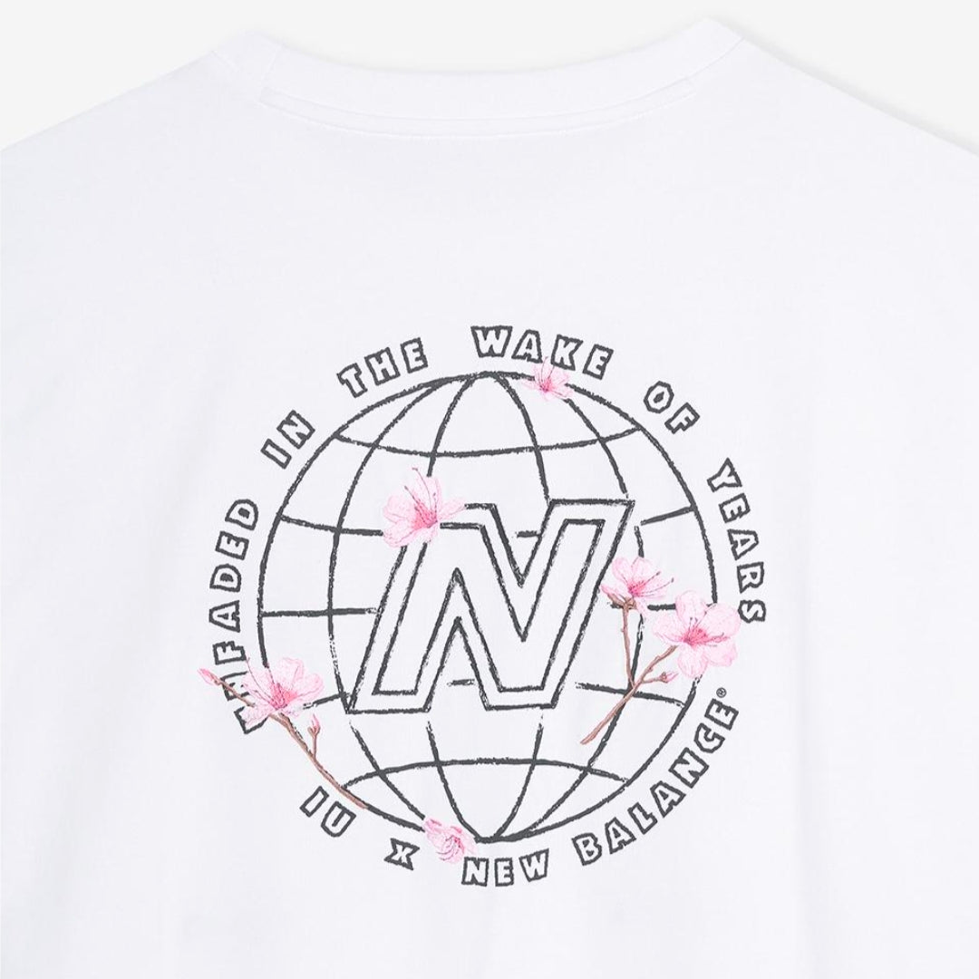 IU x New Balance Flower Gloves Graphic Short Sleeve T-shirt White(Semi Over Fit)