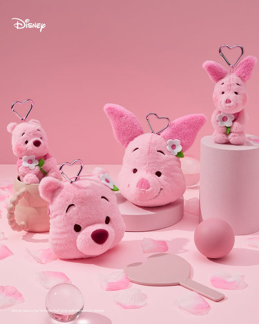 Pink Teddy Pooh & Piglet Keyring/Pouch