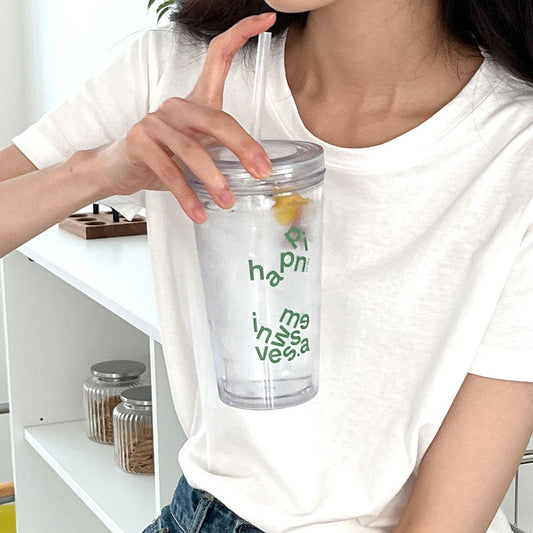 Wave Letter Long Sleeve T-Shirt - White (worn by jin)