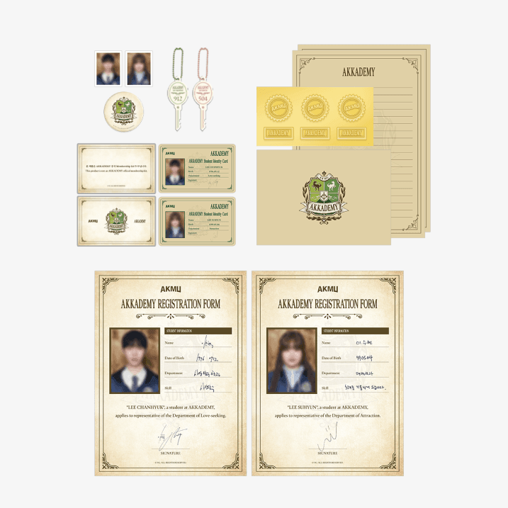 ID PHOTO : 2EA EMBLEM BADGE : 1EA KEY KEYRING : 2EA STUDENT IDENTITY CARD : 2EA LETTER PAPER : 2EA ENVELOPE : 1EA STICKER : 6EA REGISTRATION FORM : 2EA NOTIFICATION : 1EA