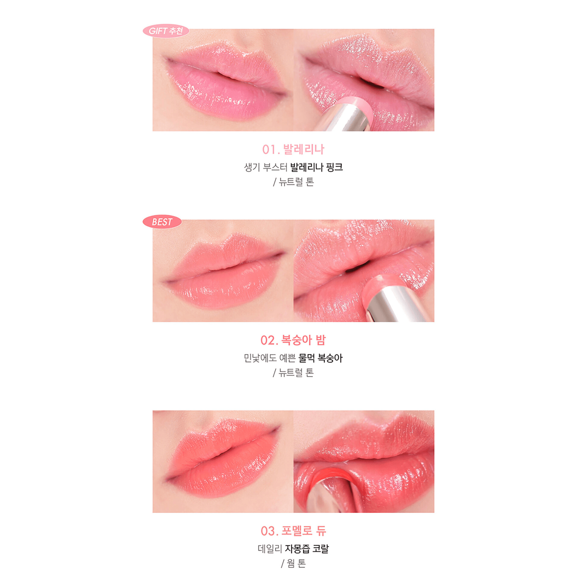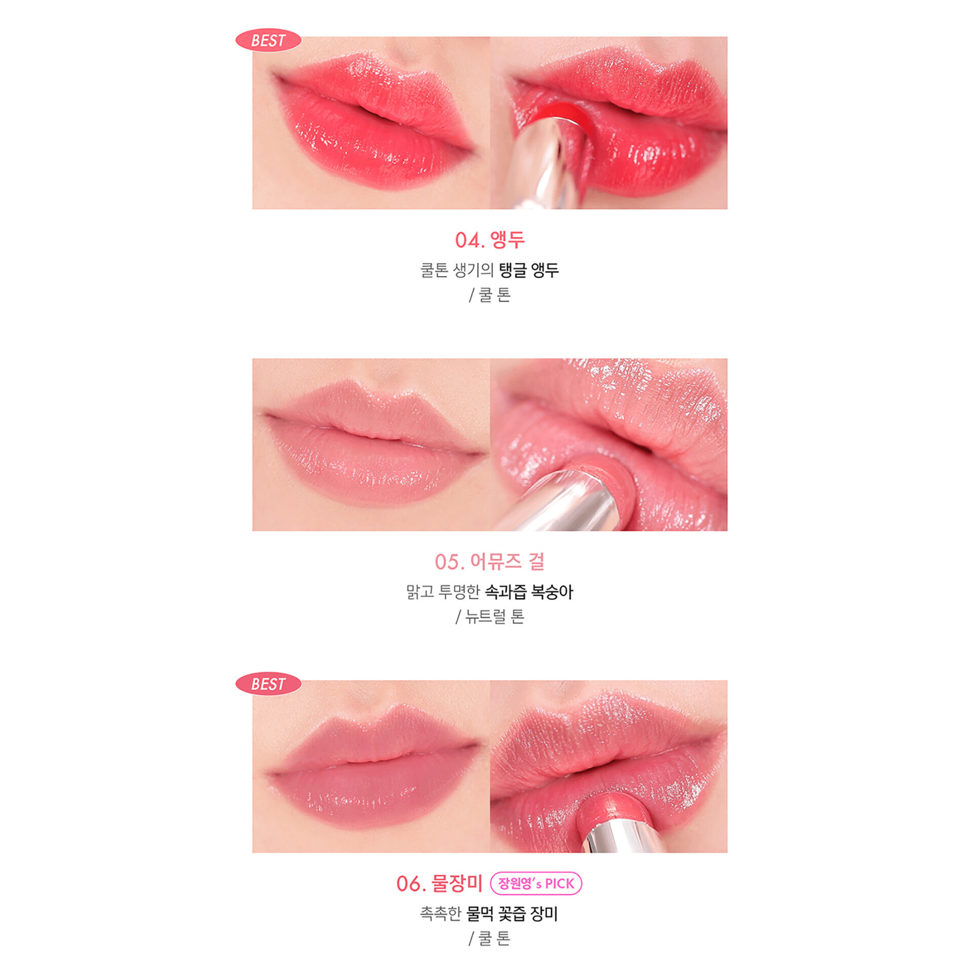 The balmy texture of Amuse Dew Balm is moist and light as dew, giving a sheer flower water-like look on your lips without stickiness. It gives you the colour of a lip tint and the care of lip balm at the same time, without the hassle of layering multiple products.