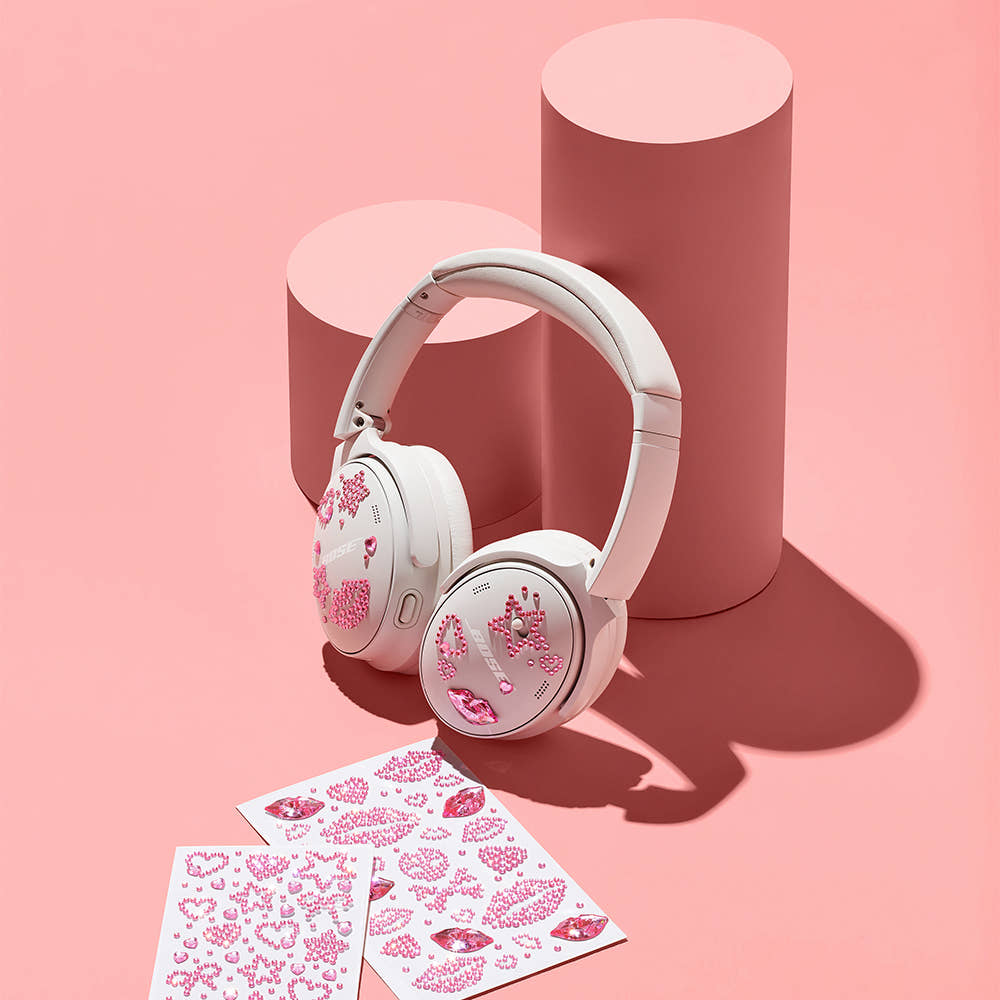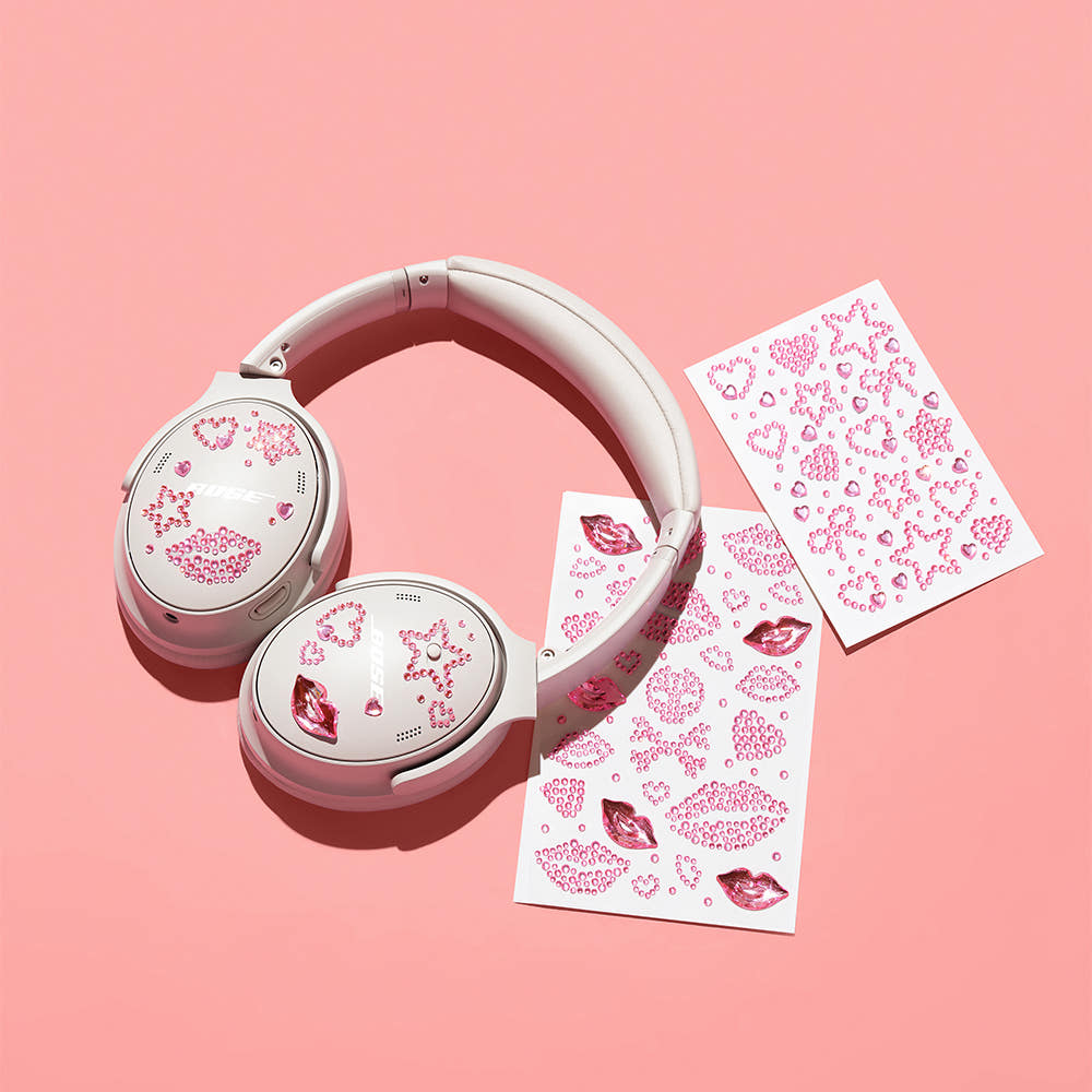 Laneige x Bose Special Limited Kit, a collaboration between the K-beauty brand Laneige and audio equipment company Bose. The kit features makeup products and headphones in a themed package. This includes A pair of white Bose over-ear headphones and a black carrying case are featured in the set.
