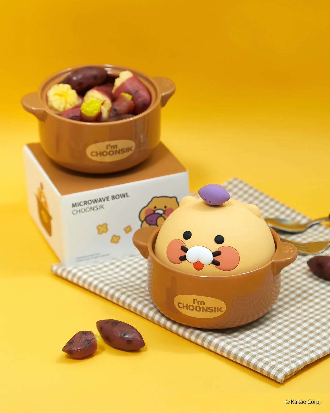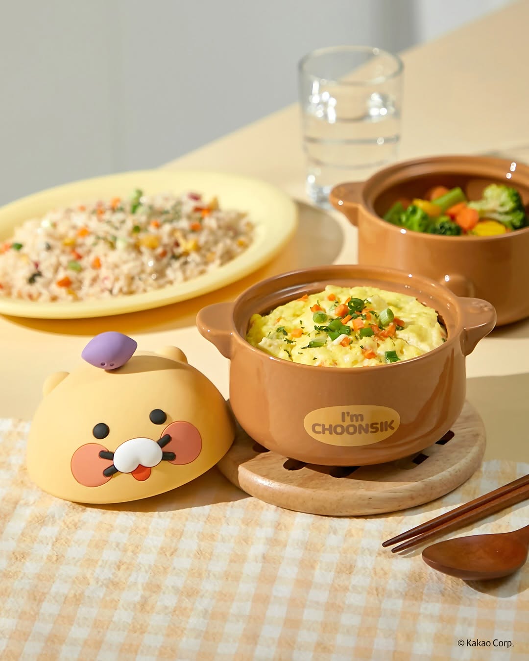 A sturdy ceramic container with a Chunsik silicone lid! The lid has a steam hole so you can enjoy more moist and delicious food