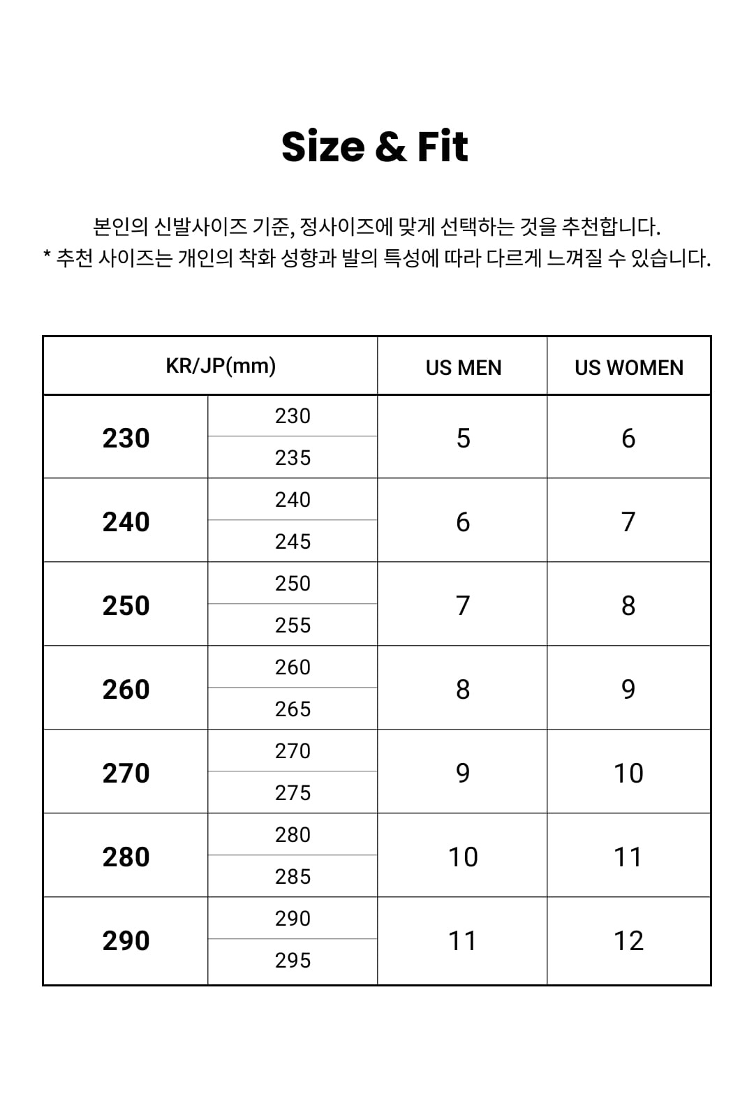 - Improved fit and minimized footstep noise by widening the UPPER width -