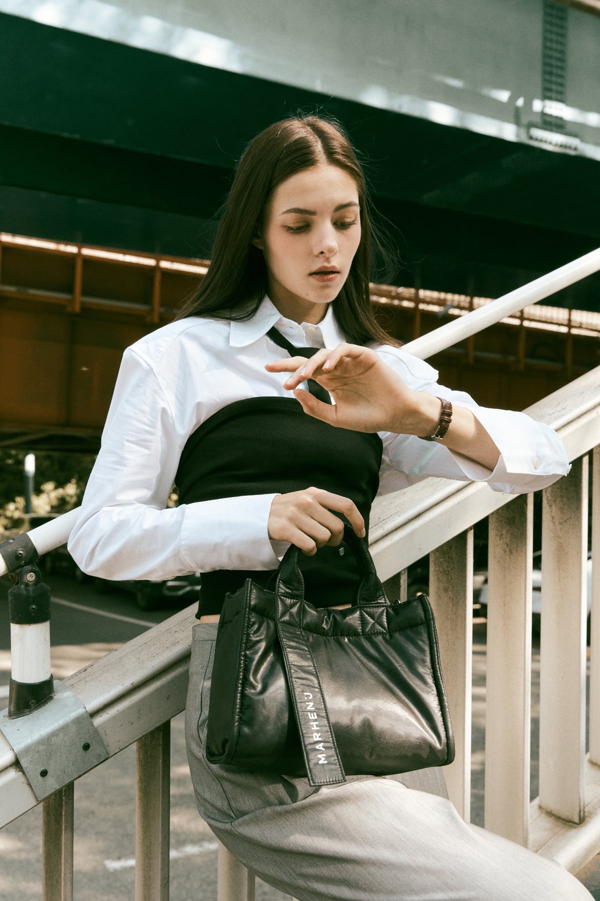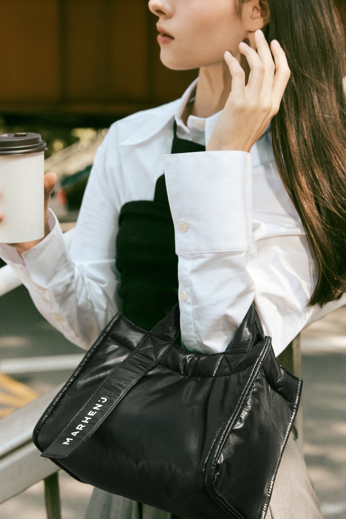The Marhenjay signature Rico bag is now reborn as a padded bag. Made of soft and light padding material, the fluffy body is attractive, and the simple design with a long strap detail on one side is a sophisticated point. It is a practical item with ample internal space that can store a tumbler.