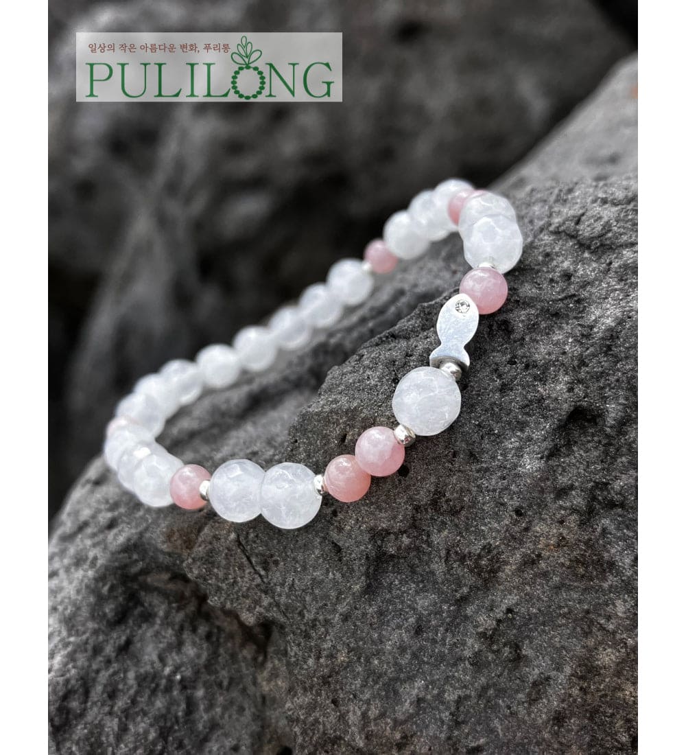 Natural White Pink Jade Fish Good Luck Fortune Gemstone Bracelet