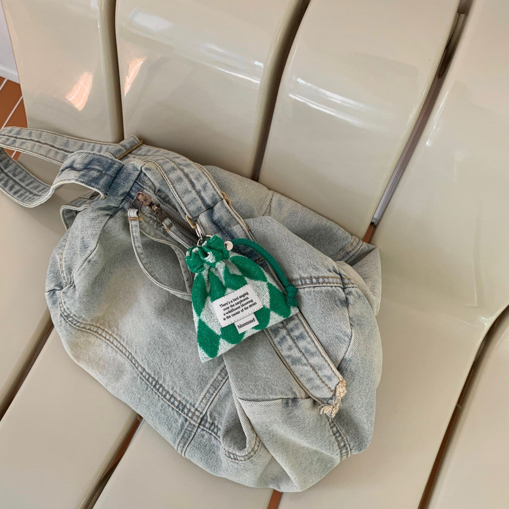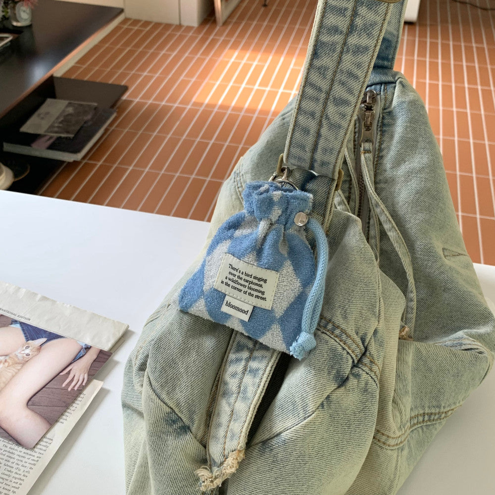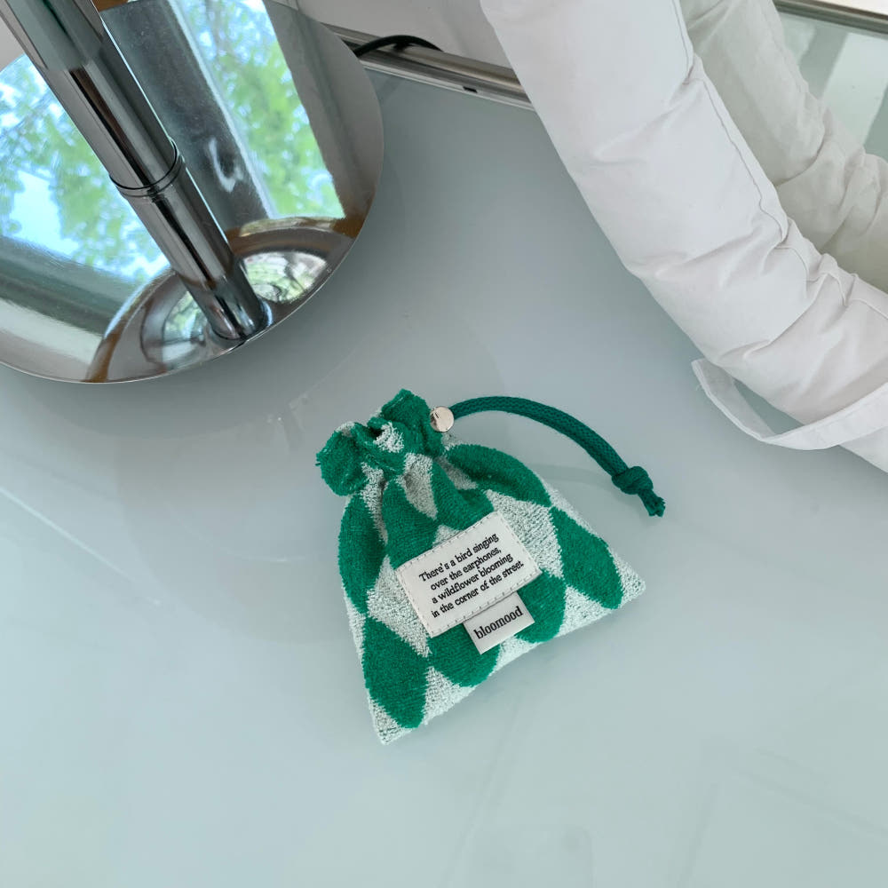 This terry check mini pouch combines the natural feel of the hairy texture of terry cloth with the kitsch feel of check patterns and colors.