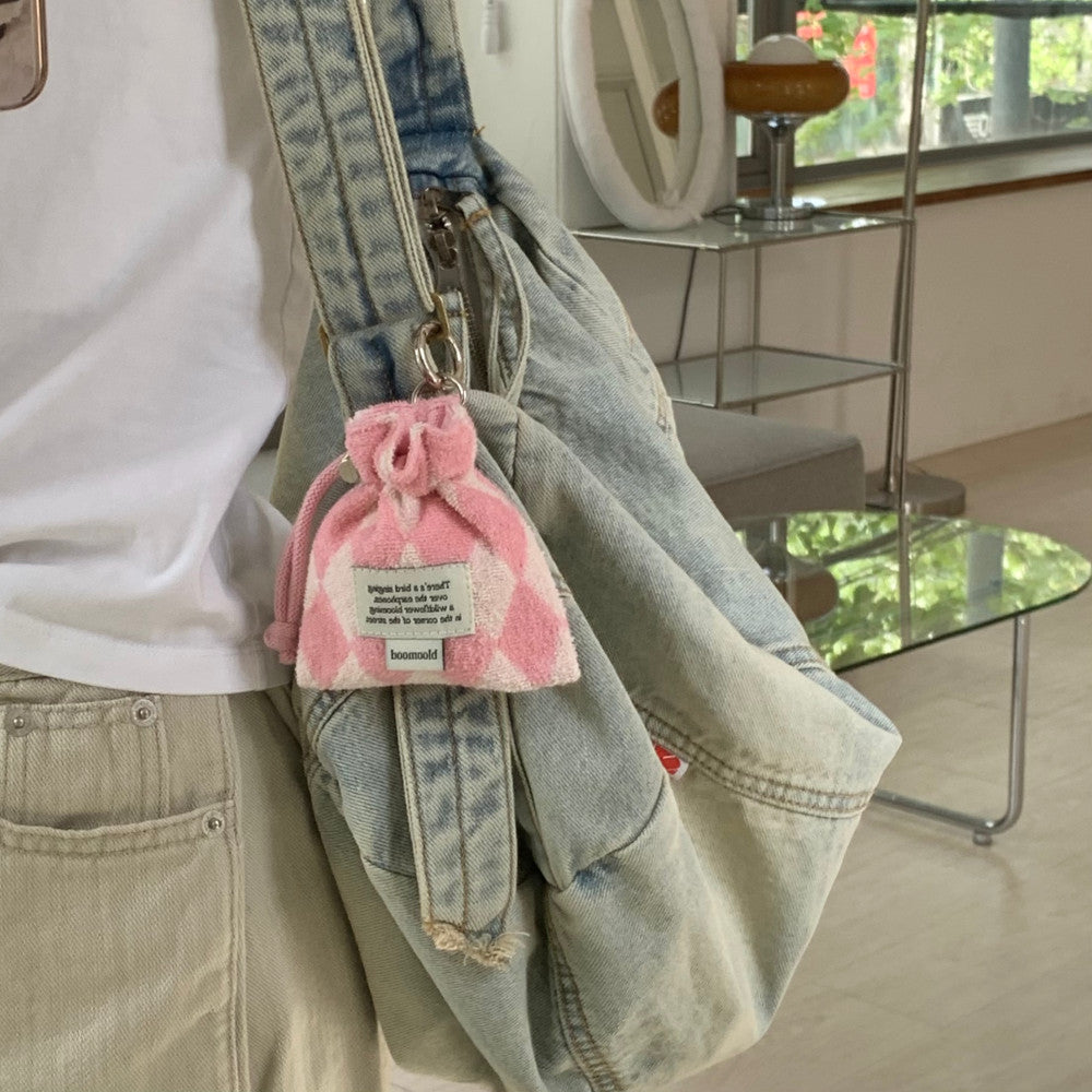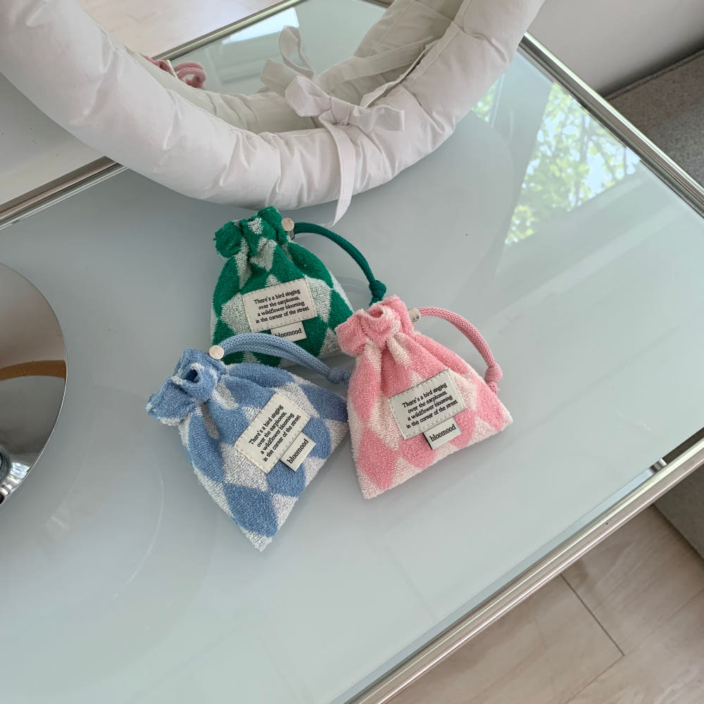 Terry check mini pouch