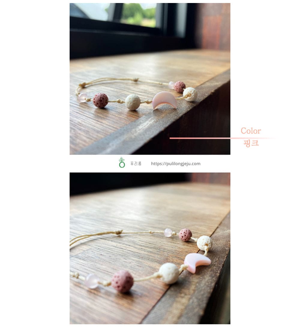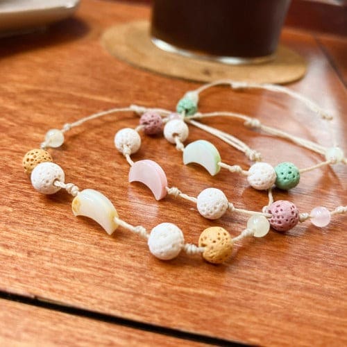 Moon Shape Mother of Pearl Morganite Raw Stone Basalt Knot Bracelet